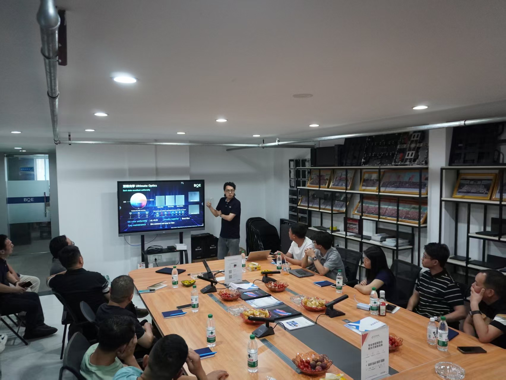 結束武漢京東方B17工廠的深度參觀后,與會嘉賓前往至湖北旭峰偉業展廳(京東方服務體驗中心)。進入深度交流分享,我們特邀BOE MLED業務湖北省負責人劉慶分享《未來BOE MLED發展方向》,京東方MLED湖北辦事處李華偉、王緒煉與大家分享了《BOE集團發展歷程及顯示屏全鏈路產品講解及解決方案》,為大家破解顯示工程落地難題,也為工程服務商提供定制化采購方案。我們并肩同行,一起交流、成長、共贏!
